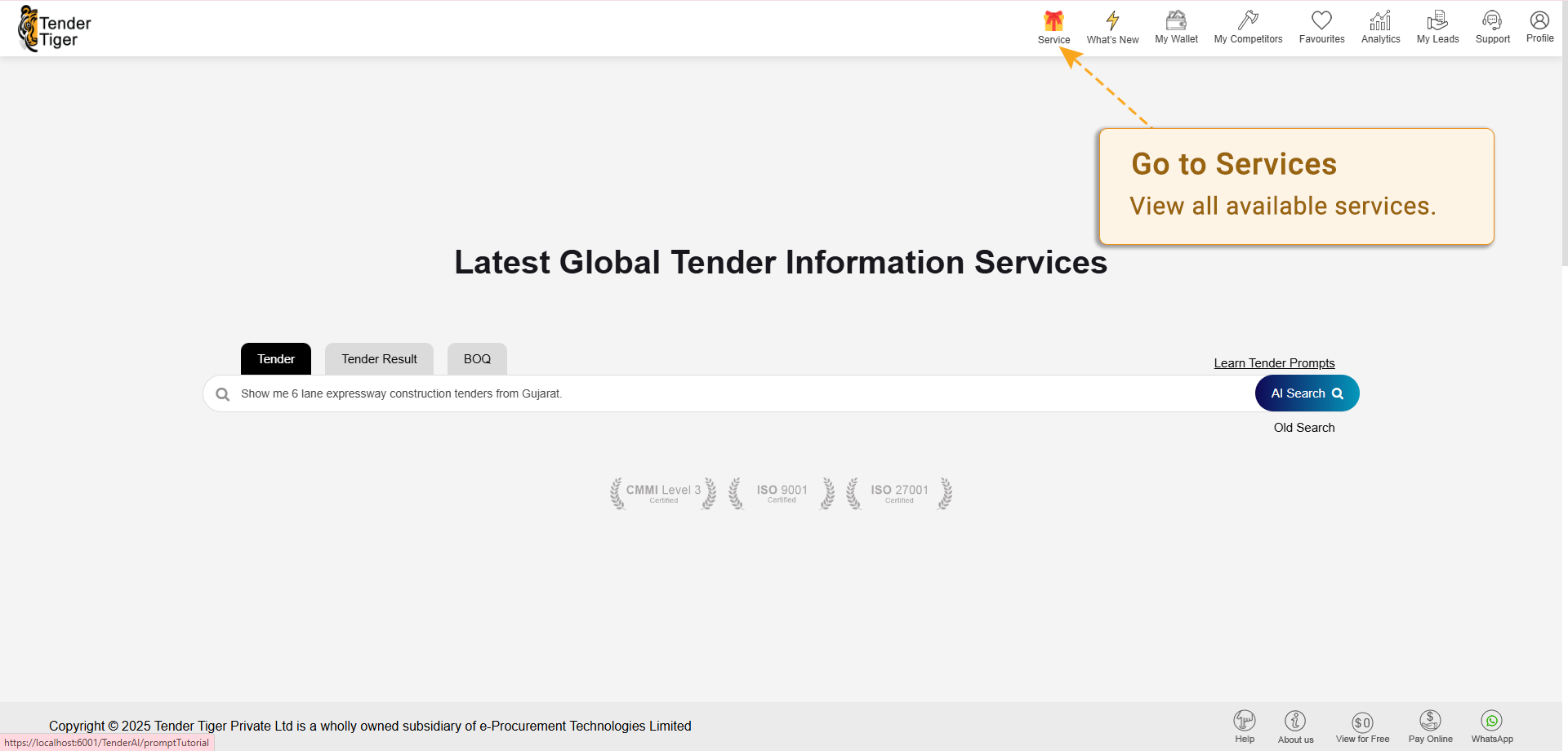 For example, if you are a Data Centre provider you can track all tender results related to SaaS software with cloud hosting — e.g. “Show me Tender Results related to Software published from Gujarat, India.”